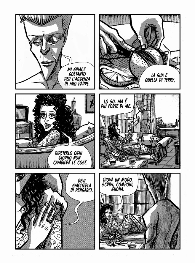 Chi è davvero David Bowie? Tra ricordi e verità nascoste, tra sogno e realtà, la storia del camaleonte del rock si incrocia con quella di una misteriosa figura che vive in una fortezza tra le stelle. Lasciatevi guidare da Lorenzo Bianchi e Veronica “Veci” Carratello alla scoperta della vita e della carriera artistica di uno dei protagonisti assoluti della scena musicale mondiale, dagli esordi del 1958 fino al ritorno sulle scene del 2013. Un viaggio nei meandri del lato umano e meno conosciuto di David Bowie, in grado di far luce sulla vera identità del Duca Bianco del rock. Un’appassionante graphic novel arricchita da un apparato redazionale che comprende la biografia, la discografia e una gallery dei costumi da lui indossati nel corso della sua carriera, tra cui anche quello del leggendario Jareth, il Re degli gnomi del film Labyrinth.