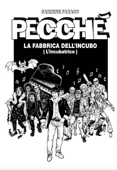 Pecché – La Fabbrica dell’Incubo (L’Incubatrice) è il suo primo fumetto. La copertina e lo svolgimento richiamano evidentemente il numero uno di «Dylan Dog», dove però i morti viventi sono i cantanti viventi, con le loro canzoni smielate e senza senso. L’unico modo di farli tacere risulterà “dargli la cento lire” che una volta andava messa nel juke-box. Il fumetto è un susseguirsi di battute l’una dopo l’altra, con tutti gli sketch più noti del comico e tutta la sua mimica resa dai disegnatori Marco Martellini e Andrea Rossetto.